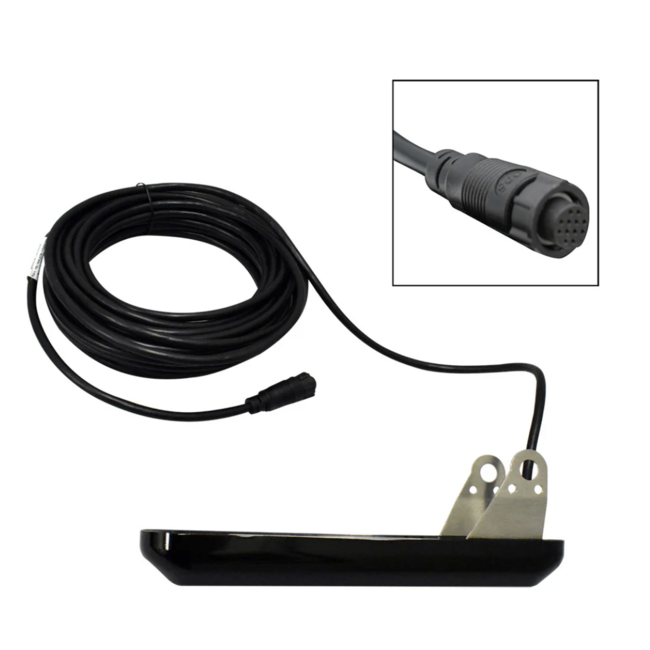Airmar 455T-TM903 CHIRP Side-Scan Spiegelheckgeber, 150 W pro Seite bei 445–465 kHz. Ideal für kleinere und mittlere Boote, liefert klare Backbord/Steuerbordbilder mit Temperatursensor, 12-Pin-Furuno-Stecker und 12-m-Kabel. Lesen Sie mehr.